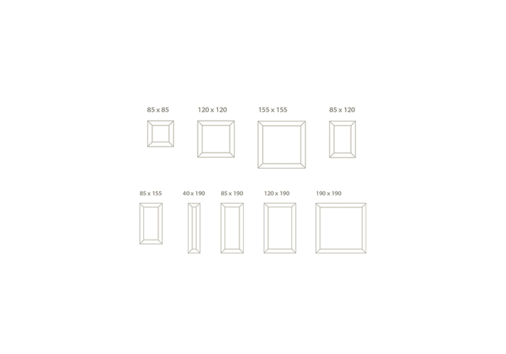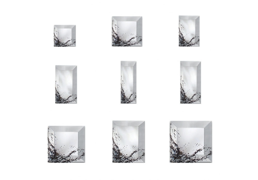 Trapezio Art designed by Riflessi is a mirror with an inclined frame both in the mirroring version and in the bronzed mirroring version and embellished with a decoration made by hand with epoxy resin. Available in different dimensions.