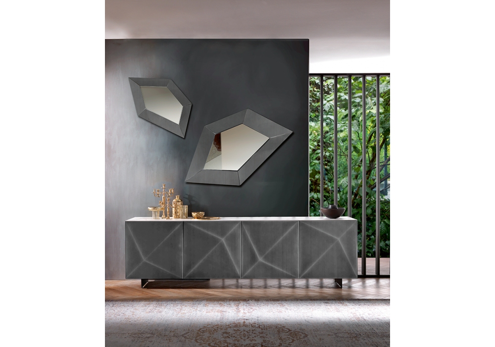City Life designed by Riflessi is a pentagonal mirror made with a hand-brushed painted frame. Mirror in bronzed mirrored glass combined with brass frame or smoked mirrored frame combined with titanium or cobalt frame. 360 ° installable. Available in 2 dimensions.