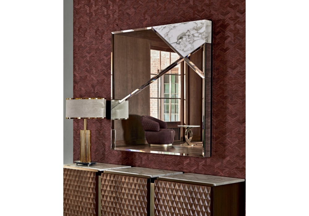 Esther designed by Castello Lagravinese Studio for Opera Contemporary is a mirror with MDF structure, silver, bronze or antique mirror and marble insert. Available in different finishes and dimensions.