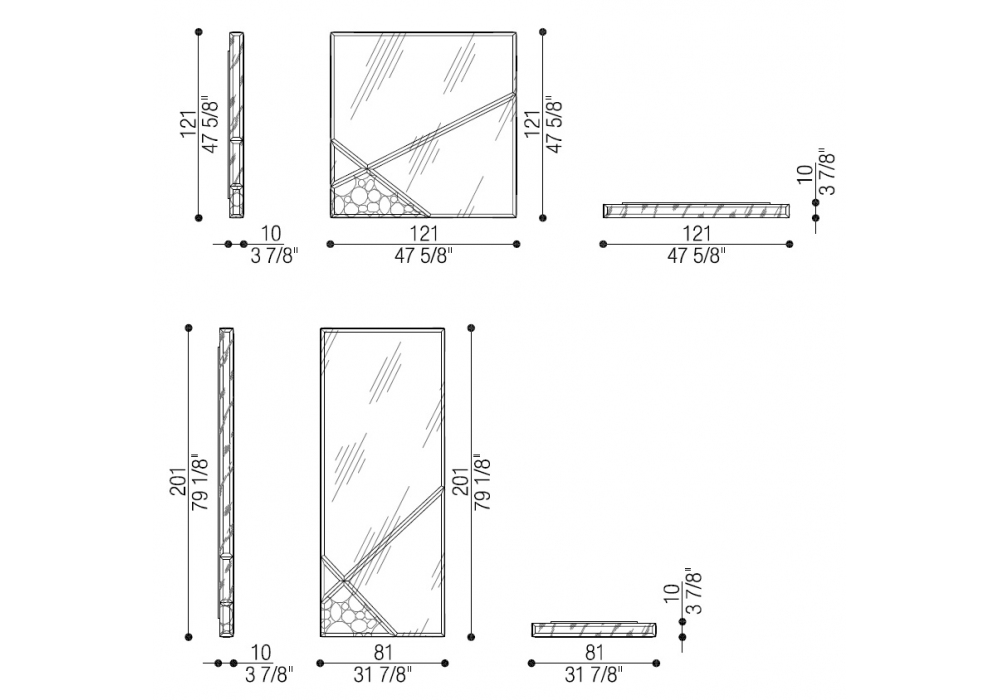 | Dimensions | 121 x 10 x H 121 cm; 81 x 10 x H 201 cm |
