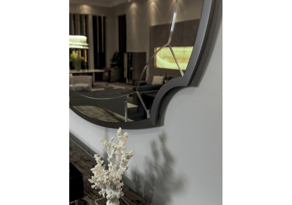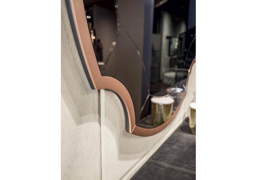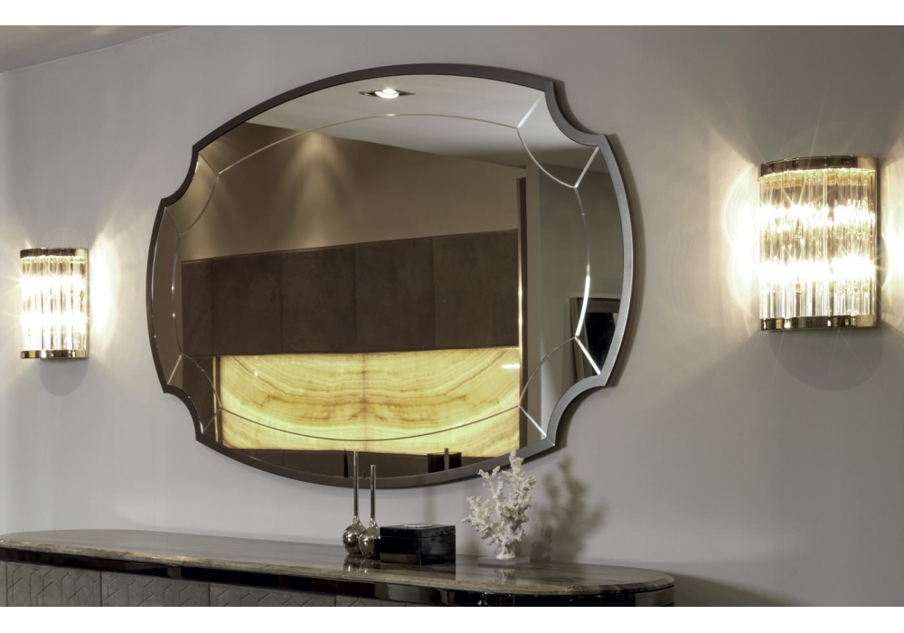 Graydon designed by Giuseppe Iasparra for Longhi is a mirror with bronze, smoked or natural finish with engraved decoration. Ground metal edge. Available in different dimensions.