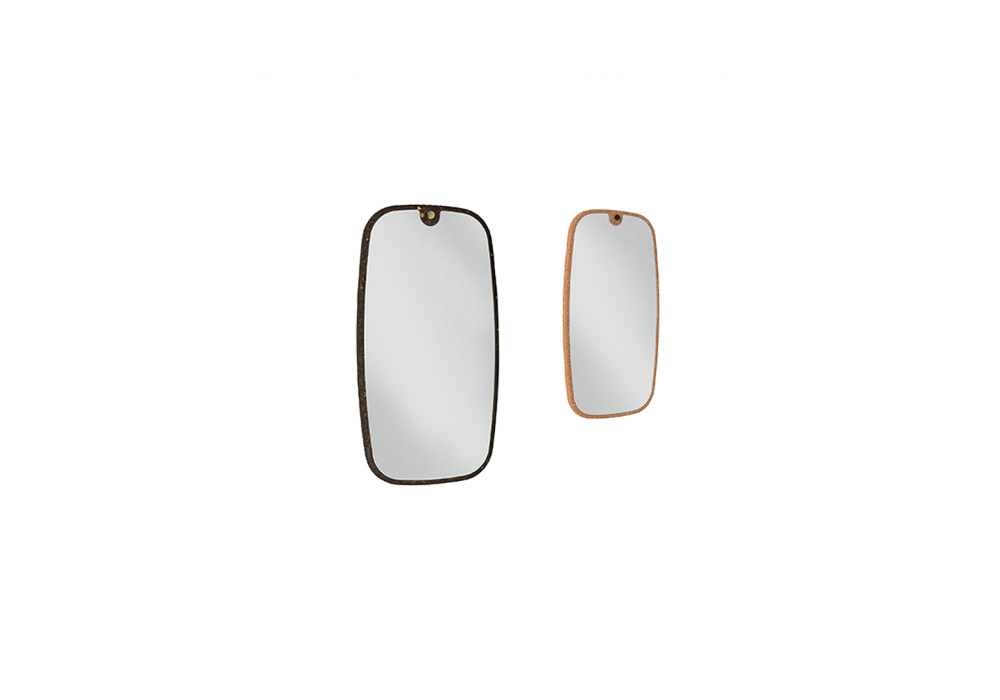Kormirò designed by Discipline Lab is a sound-absorbing mirror with natural or black cork frame. Polished brass-plated fixing nail for the black cork frame or black for the natural cork frame. Available in different sizes.