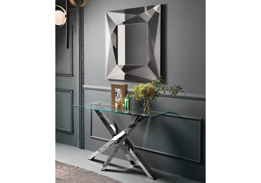 Diamond designed by Riflessi is a mirror with diamond shaped frame in mirrored stainless steel in different finishes. Available in different sizes.