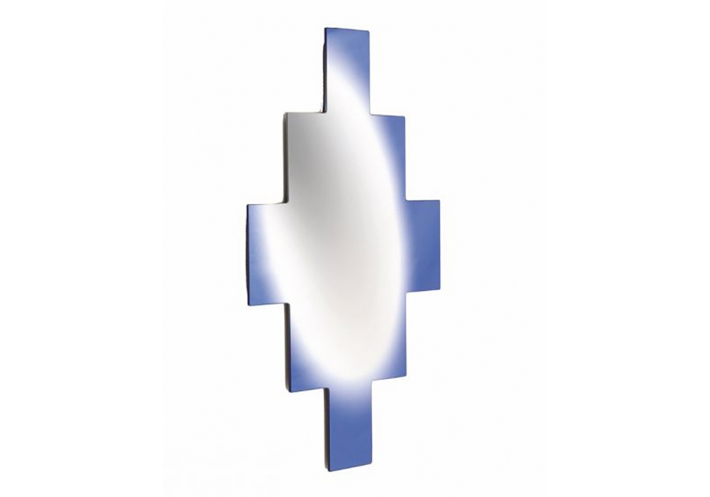 Edaird designed by Marcelo Burlon for Driade is a wall mirror with a shape that reproduces the MB logo created by layering a 5mm mirror. and a 5mm glass. extra-clear with shaded digital print. The mirror is supported by an 18mm thick mdf panel. painted matt black, recessed from the perimeter profile of the mirror, all edges are rounded. Height-adjustable hooking system of the mirror to the wall for easy positioning and levelling. Internal use only.