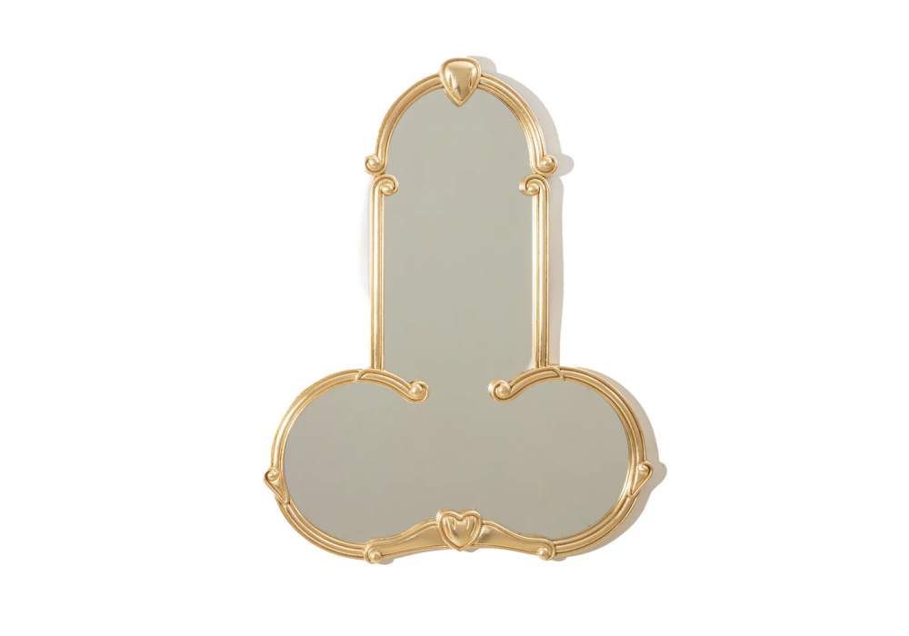 Liberty Man designed by Francesco Decio for Seletti is a mirror with golden colored MDF frame and glass mirror.