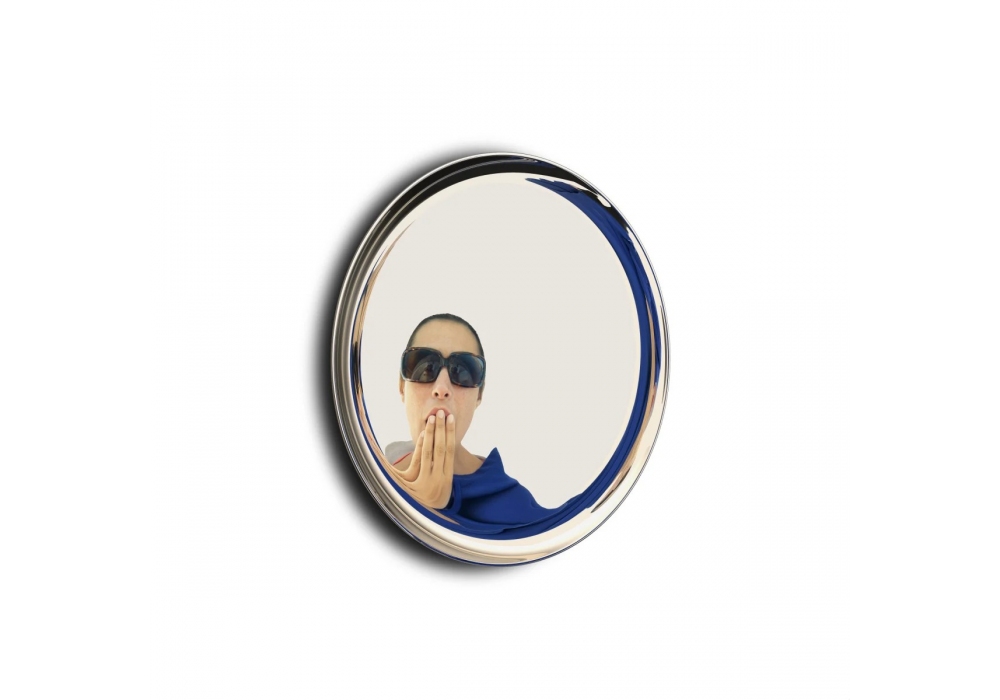 Menteur designed by Philippe Starck for Glas Italia is a mirror entirely made of extra-clear crystal with a curved perimeter. Menteur is available in different models.