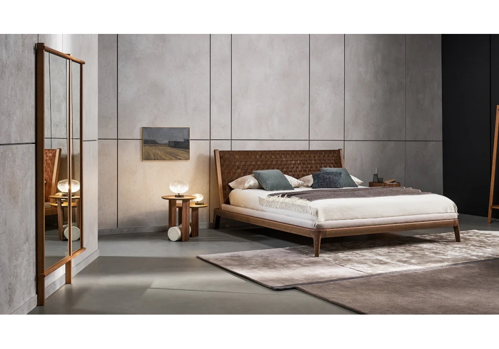 Isola designed by Mario & Giulia Mazzer for Bonaldo is a mirror made of solid wood, American walnut finish. Featuring a fixed mirror and a movable mirror. The mirror rests on the floor and also has a wall fixing.