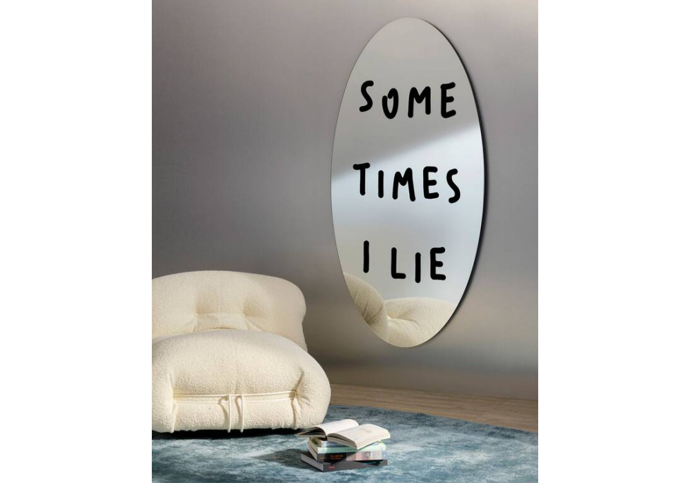 Me From Outside designed by Pietro Terzini for Cassina is a silkscreened elliptical mirror.