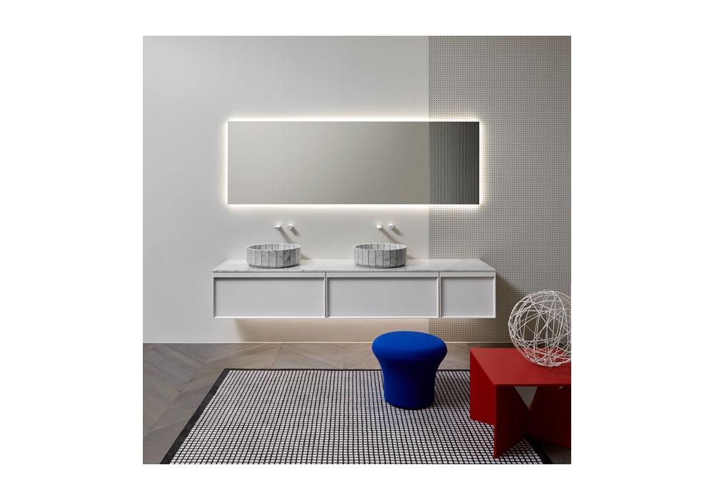 Distinto designed by Gumdesign for Antonio Lupi is a polished-edge mirror with a ribbed glass insert, white LED lighting, and a frame. Available in different dimensions.