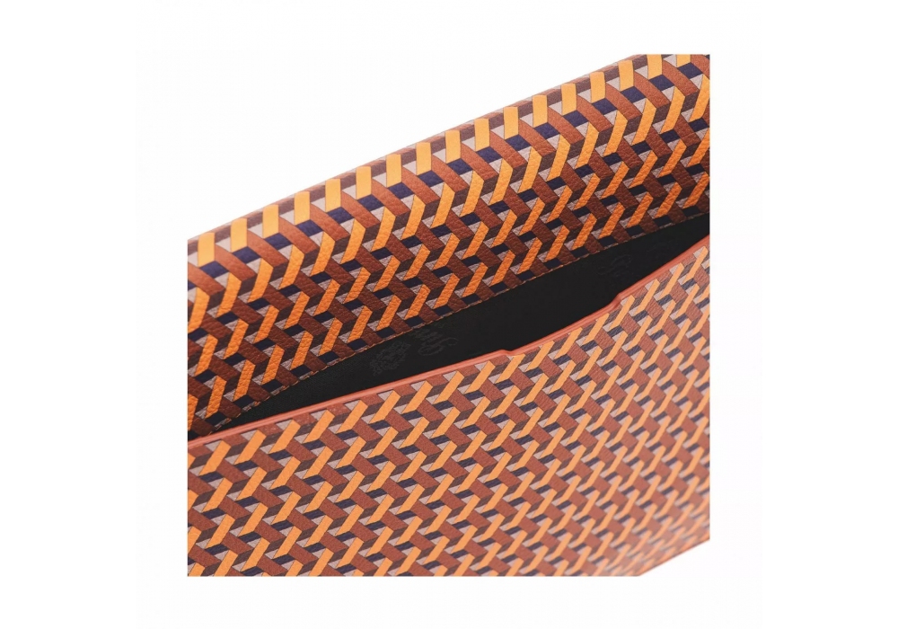 A4 Notepad Holder designed by Pineider adn Poltrona Frau is made in Pelle Frau® leather. The notepade holder has a business card compartment, one for one's own documents, a pen holder and another compartment with a Pineider paper notepad. The notepad is comprised of 60 sheets of paper that fold out vertically. The paper used is white 80 gr fi ligree Pineider laid paper, with a 70% content of recycled paper. The cover is made of 300 gr. woodfree laid white card, manufactured using 100% recycled paper. The notepad backing is made of handmade Pineider 680 gr. card.