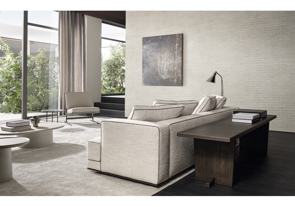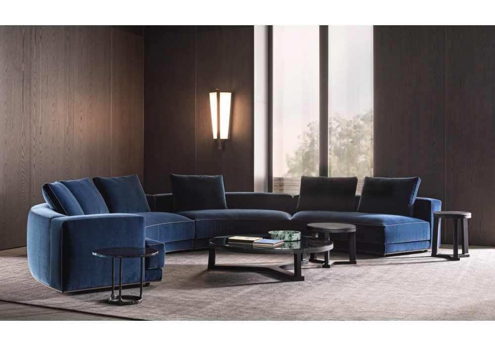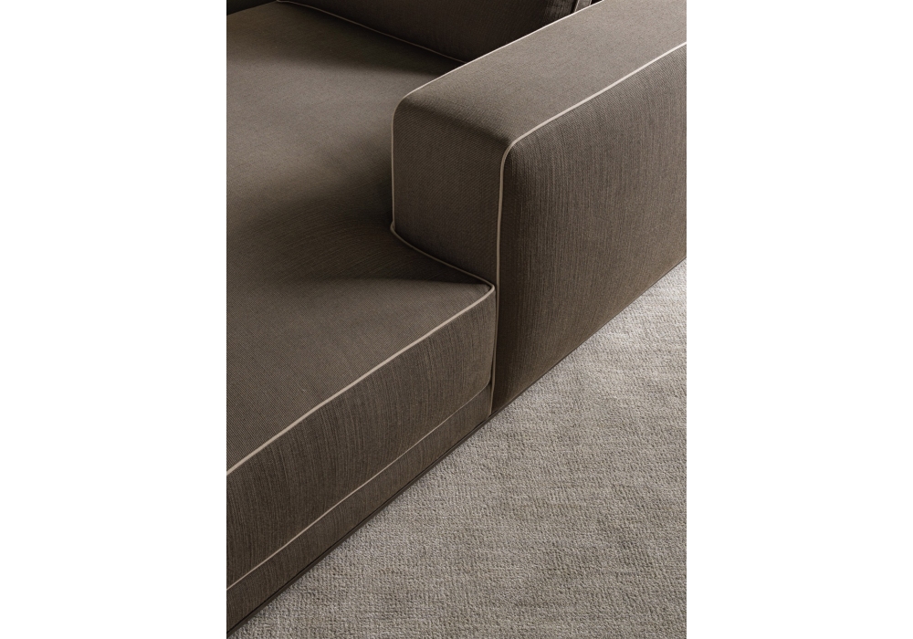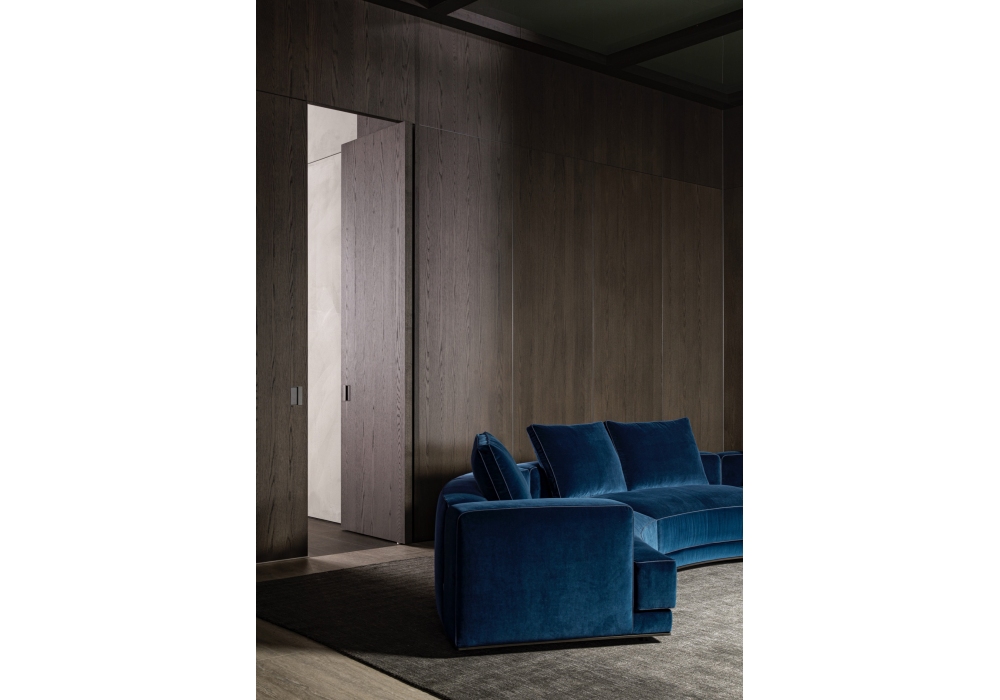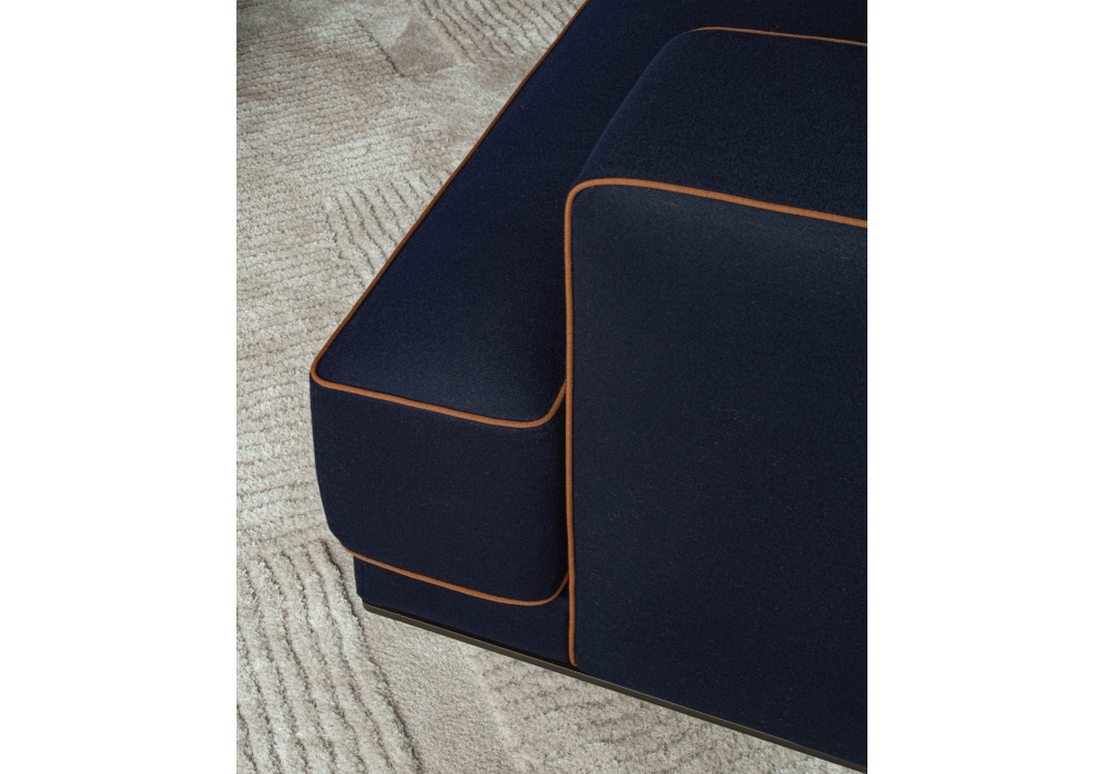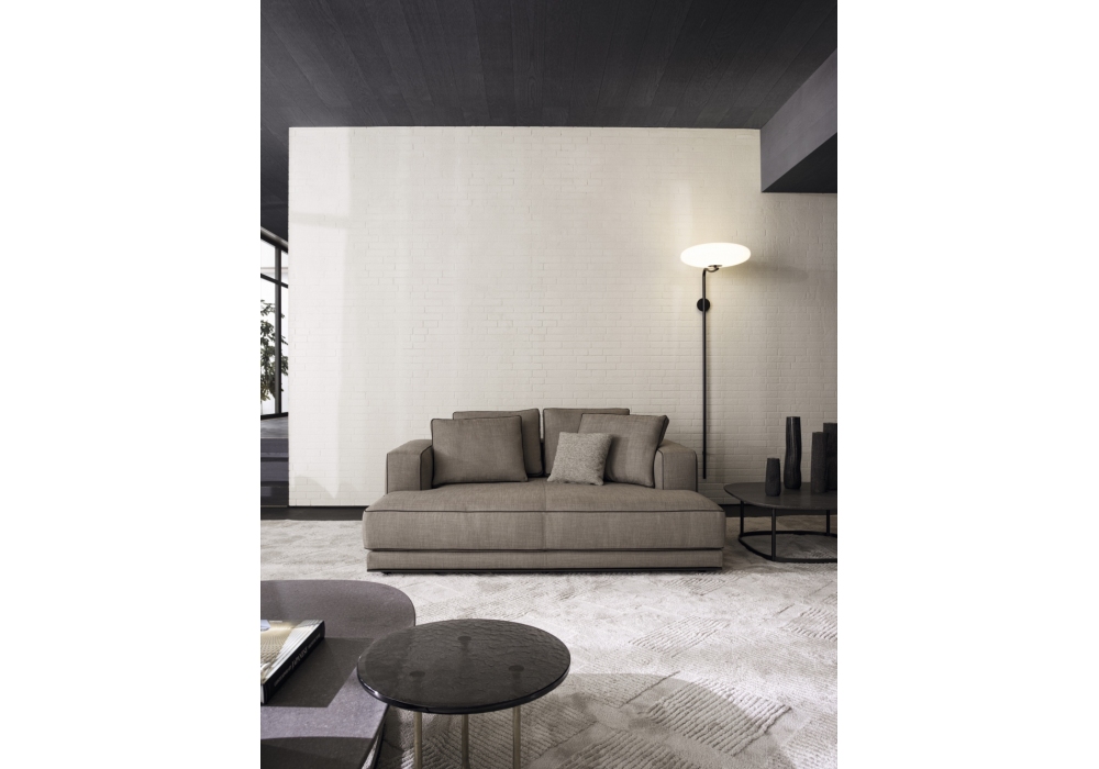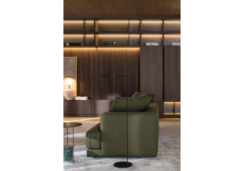 Augusto designed by Vincent Van Duysen for Molteni&C is a modular sofa made with structure padding in high load-bearing variable density polyurethane foam, lining in coupled velvet. Base in painted aluminium, aluminum ground support with non-slip plastic tips. Upholstery in fabric or leather. Fabric upholstery with grosgrain piping in the colors indicated, leather upholstery in the same finish.