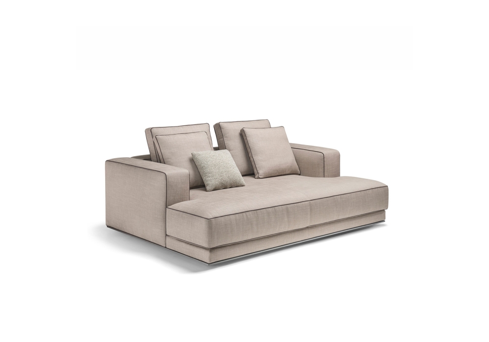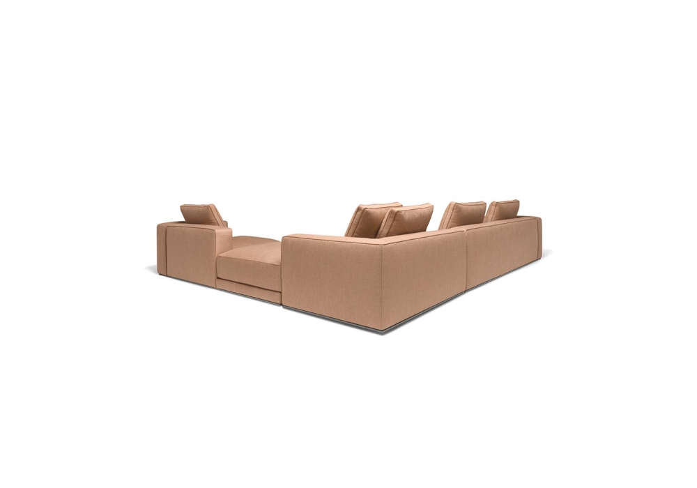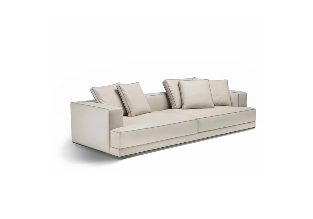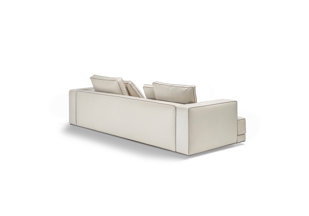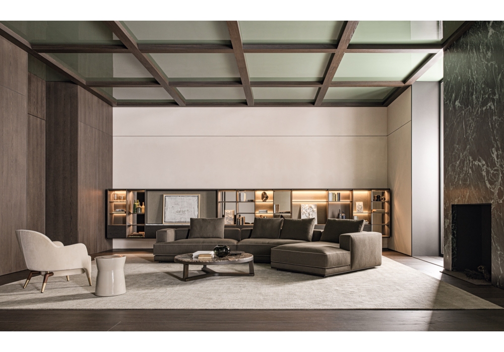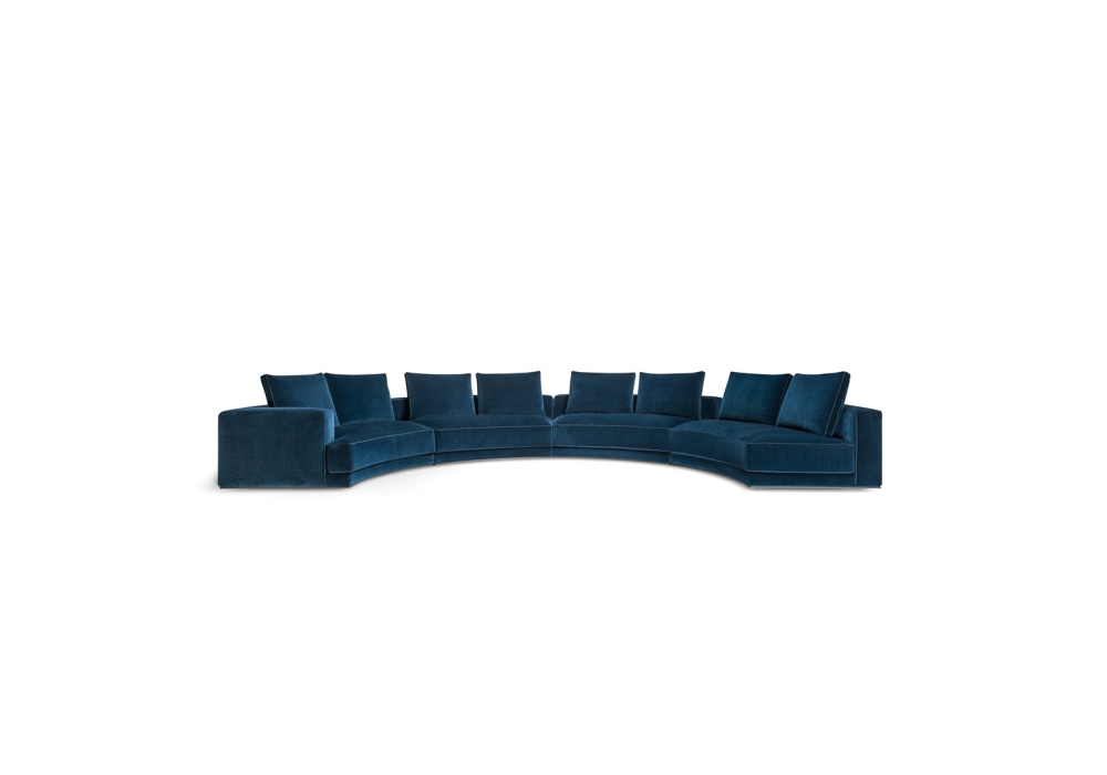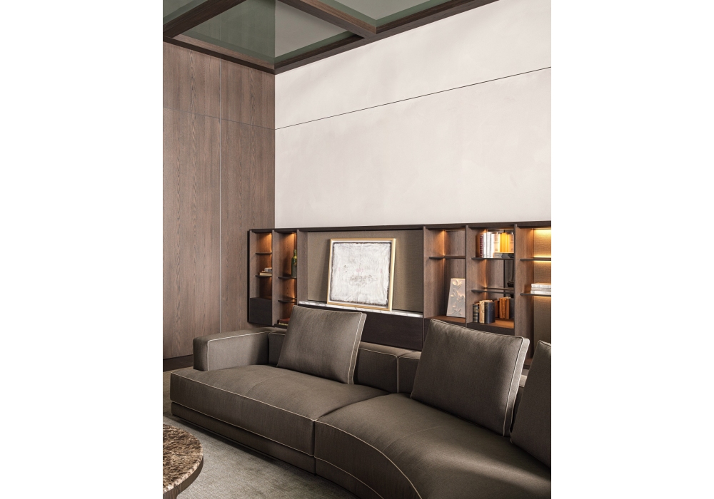 Augusto designed by Vincent Van Duysen for Molteni&C is a modular sofa made with structure padding in high load-bearing variable density polyurethane foam, lining in coupled velvet. Base in painted aluminium, aluminum ground support with non-slip plastic tips. Upholstery in fabric or leather. Fabric upholstery with grosgrain piping in the colors indicated, leather upholstery in the same finish.