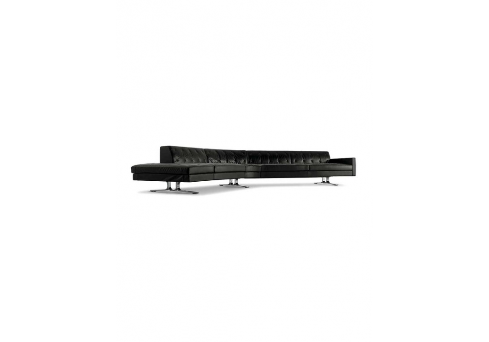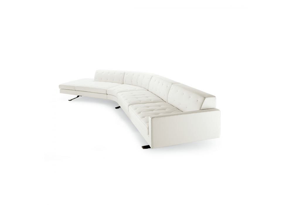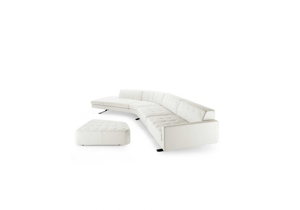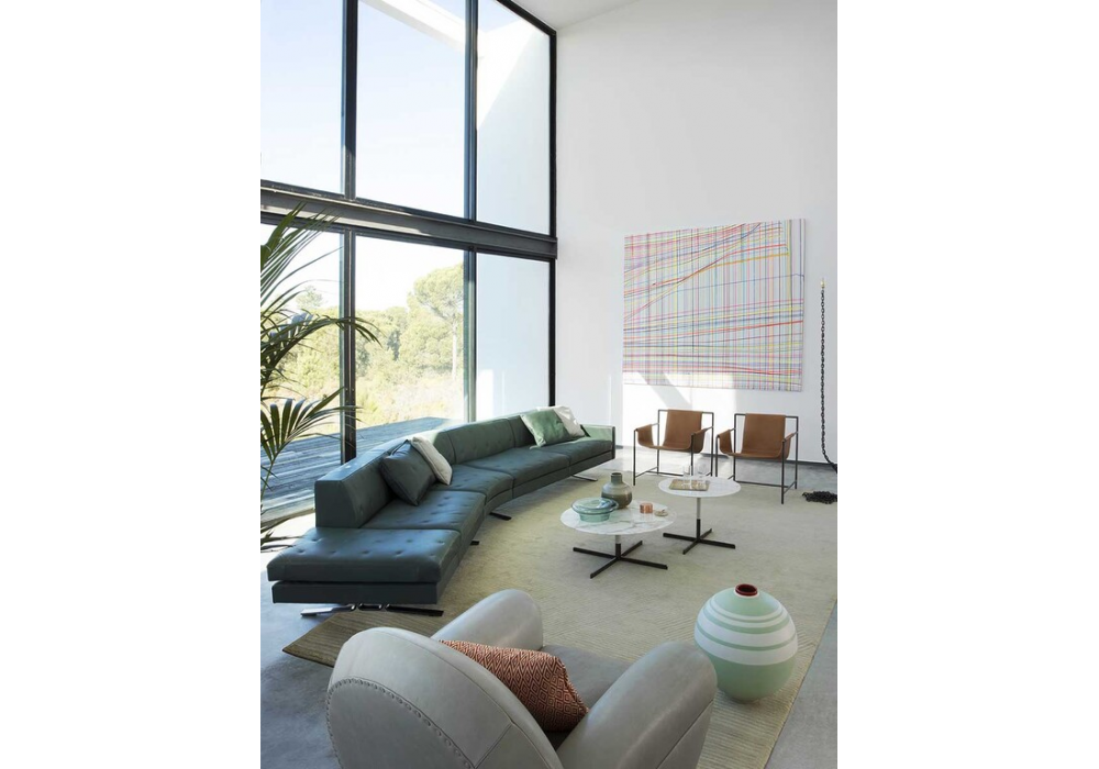 Kennedee, designed by Jean-Marie Massaud for Poltrona Frau, is a sofa with structure in solid seasoned beech wood. Drawn steel feet with a gunmetal grey finish. Protective plastic caps. Upholstery in Pelle Frau® leather. In the leather versions, a delicate hand-stitched X motif offers a colour contrast enriching the upholstery of the backrest and seat cushion.