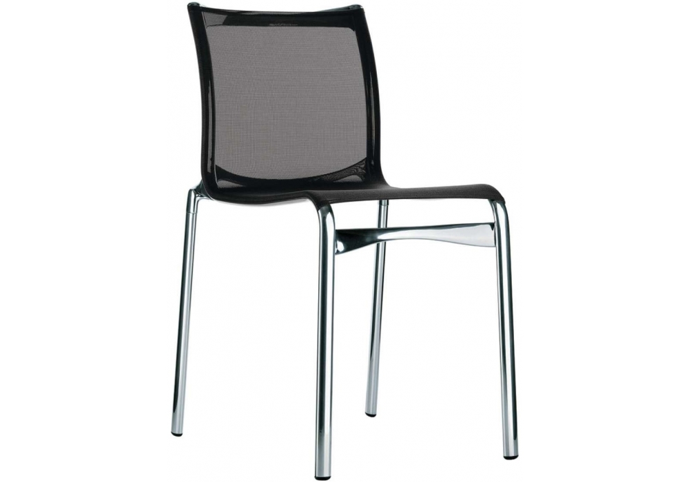 441 Bigframe designed by Alberto Meda for Alias is a chair with extruded profile aluminum structure, seat, and backrest in fireproof net, fabric, or Pelle Frau leather.