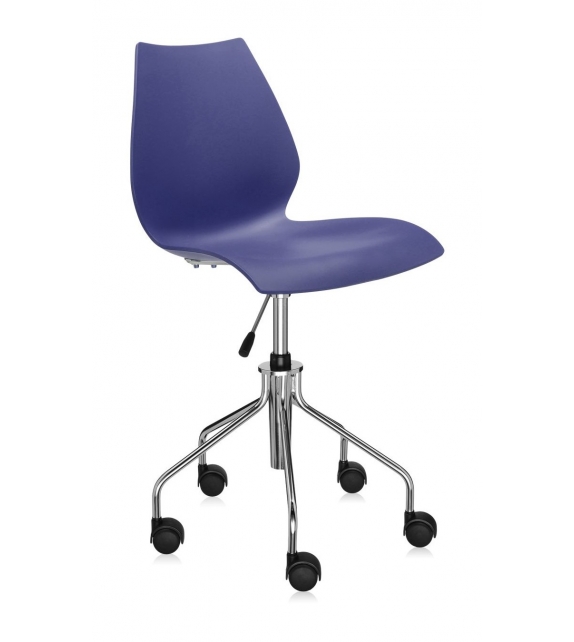 Maui designed by Vico Magistretti for Kartell is a chair on wheels with or without armrests made with chromed steel structure and batch-dyed polypropylene shell. Available in different finishes.