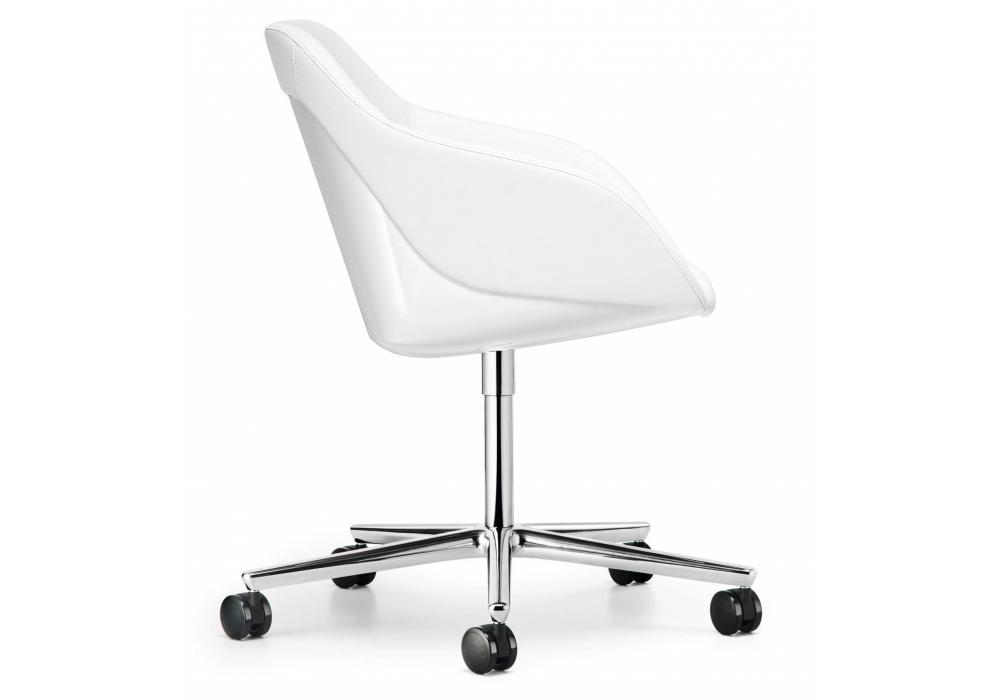 Turtle designed by PearsonLloyd for Walter Knoll is a swivel bucket chair on castors with 5-star base and outer shell in white, black, plastic or in the same material of the upholstery. Covering available in fabric or leather.