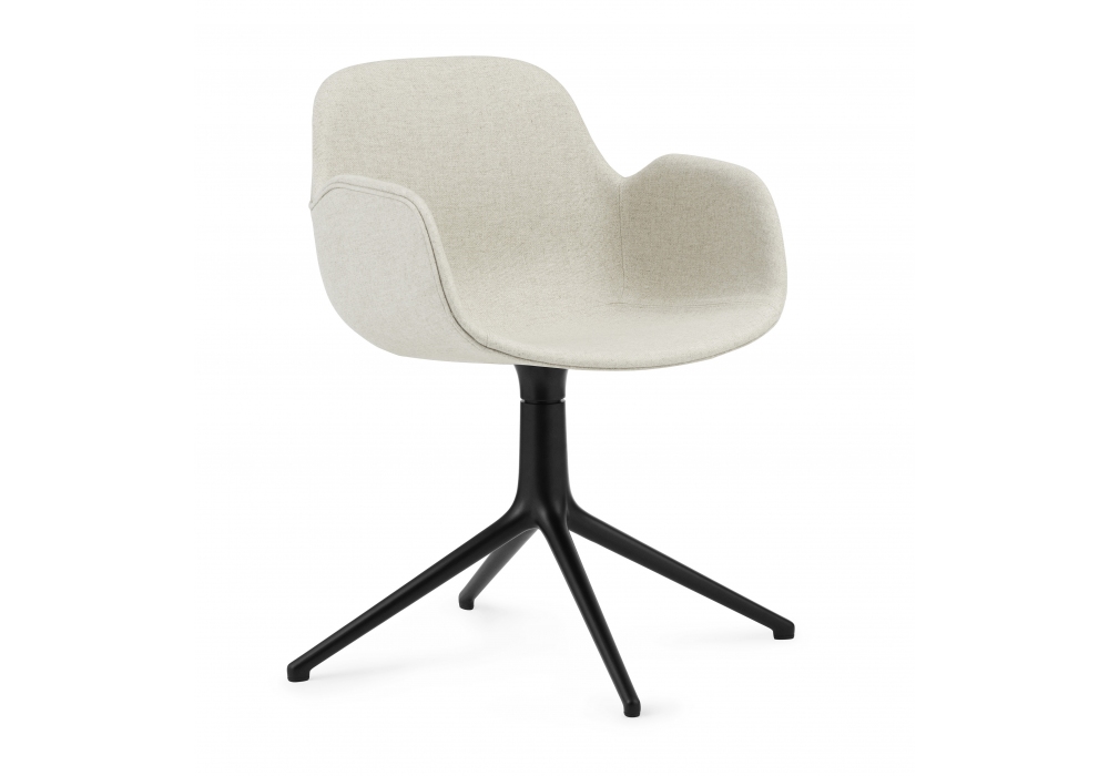 Form designed by Simon Legald for Normann Copenhagen is a swivel armchair with aluminium base and upholstery in fabric. The new swivel base in cool aluminium gives the Form armchair masculine and exclusive look as well as comfortable freedom of movement, making the chair eminently suitable for places like conference rooms and restaurants. Available in different finishes and two versions.