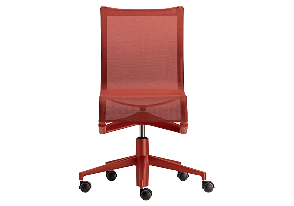 432 Rollingframe 44 designed by Alberto Meda for Alias is a chair, 5-star base with hard or soft wheels, extruded aluminum structure, seat, and backrest in the polyester fireproof net or Pelle Frau, or Kvadrat covered. Available in different finishes.