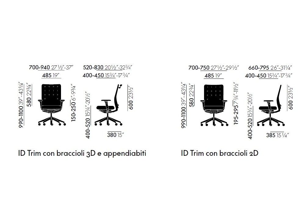 ID Trim designed by Antonio Citterio for Vitra is a swivel office chair with five-star base with castors. Available with fabric or leather upholstery in different finishes and armrests in the same finish as the structure or circular in polished aluminum. With or without adjustable lumbar support.