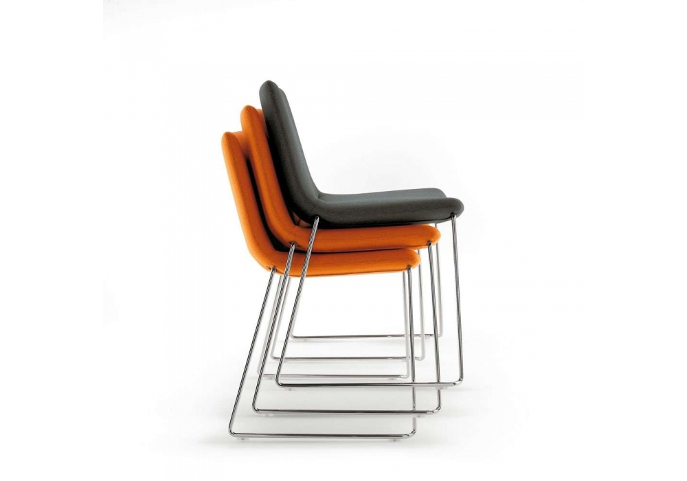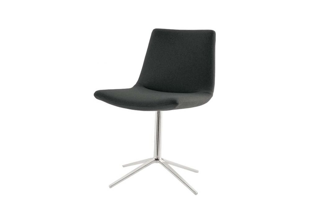 Cosmos designed by Jeffrey Bernett for B&B Italia Project is a chair available in fixed version with bright chromed steel slade base or swivel version with bright brushed aluminium four spokes. Covering available in fabric or leather.