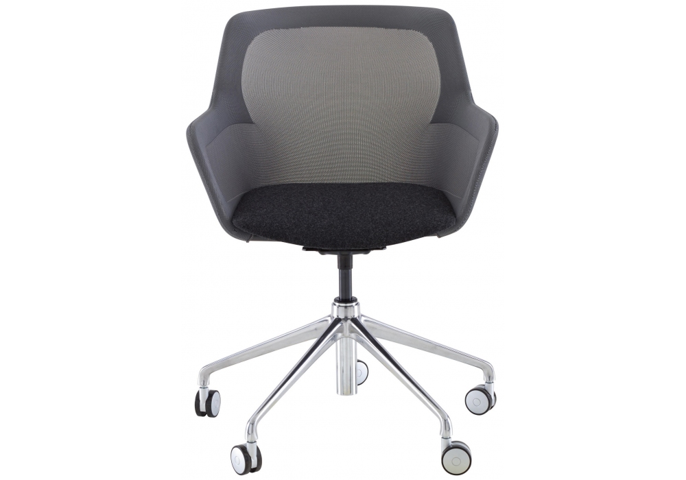 Piccione designed by Claudio Dondoli & Marco Pocci for Ligne Roset is a swivel chair on castors with seat padded in polyurethane foam and polyester. Woven polyester stretch fabric on backrest. 5-star aluminium base, available in 2 finishes. Available in 2 types: with or without armrests.