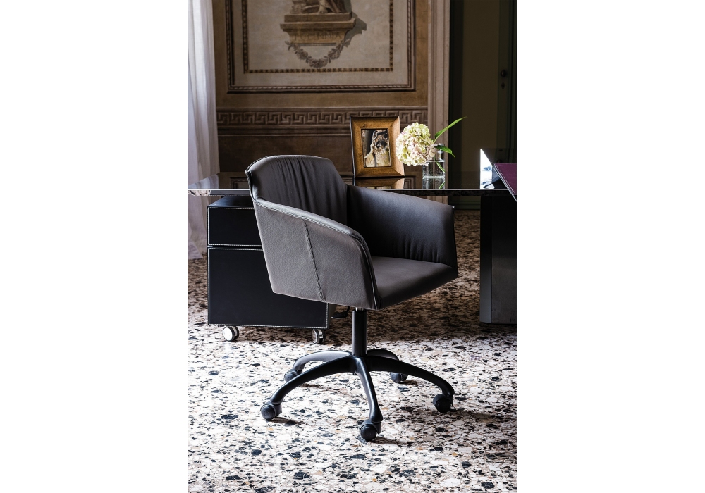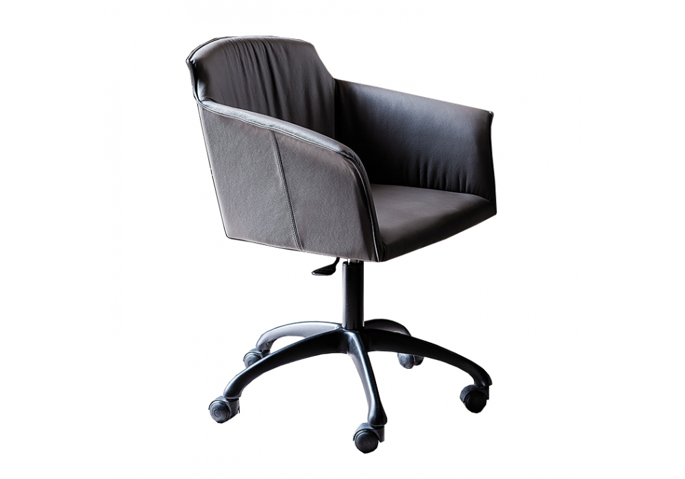 Tyler Wheels designed by Paolo cattelan for Cattelan Italia is a swivel chair with adjustable height and castors, available with or without armrests. Upholstery in fabric, synthetic nubuck, micro nubuck, synthetic leather or soft leather. Base with 5 spokes in polished aluminium or column and gas piston in chromed steel or with base and column in matt black aluminium and gas piston in chromed steel.
