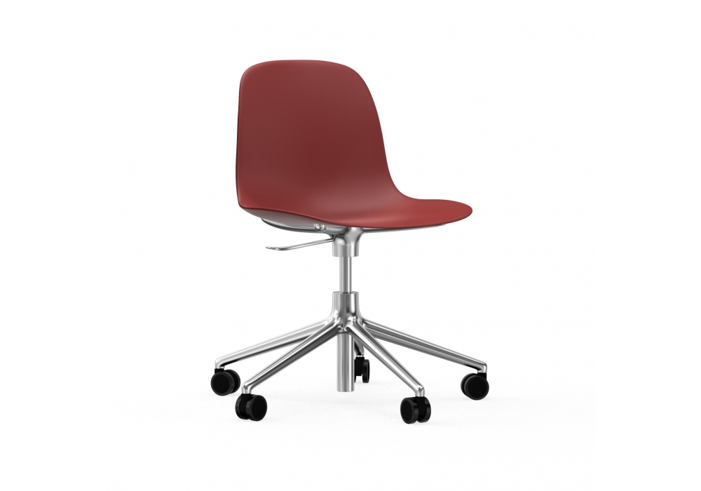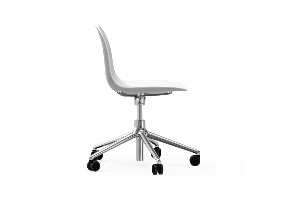 Form, designed by Simon Legald for Normann Copenhagen is a swivel chair, with aluminum base and seat in plastic material in different colors. Form is available in different models and colors with a swivel base.
