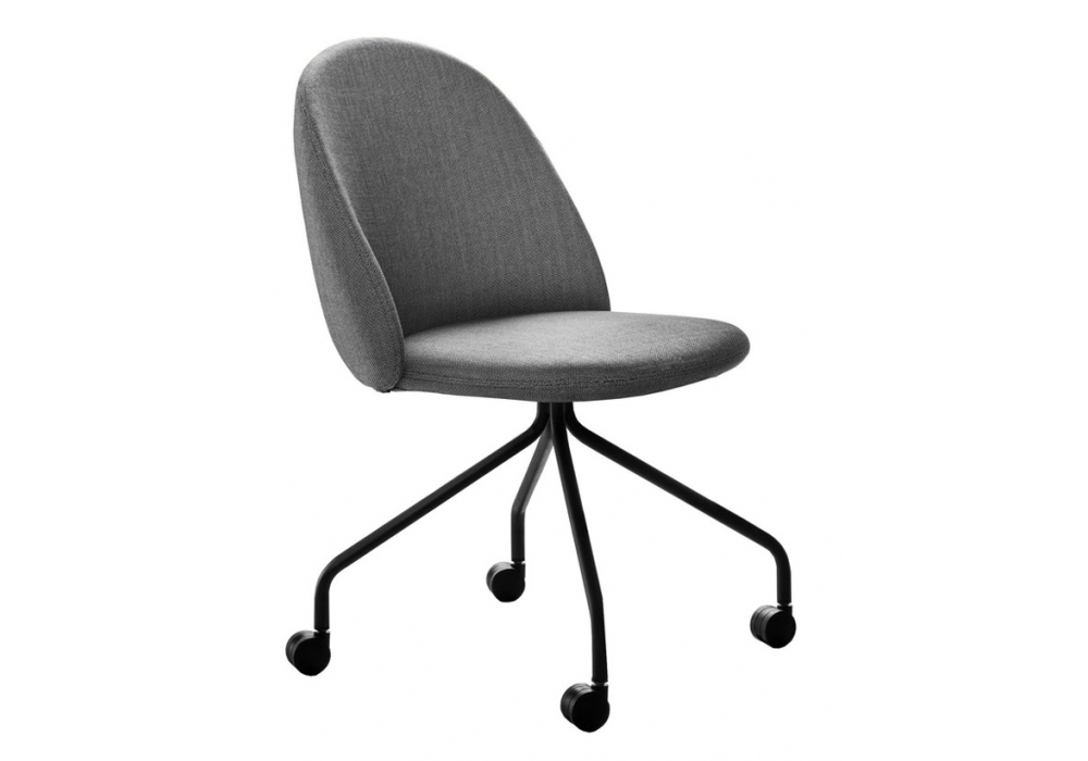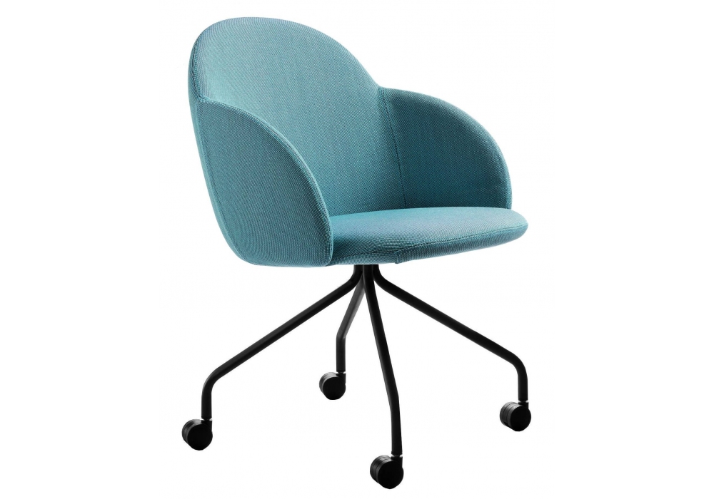Iola Office designed by E-ggs for Miniforms is a chair with shell in flexible polyurethane covered in fabric, base with wheels. Available in different finishes and in the version with or without armrests.