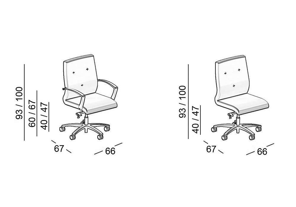 One designed by Luxy is a chair with castors made with backrest and seat upholstered in polyurethane foam, base in die-cast aluminum polished or painted with epoxy powders. Armrests in the same finish as the base. Upholstery in fabric or leather. Available with different movement regulating mechanisms.