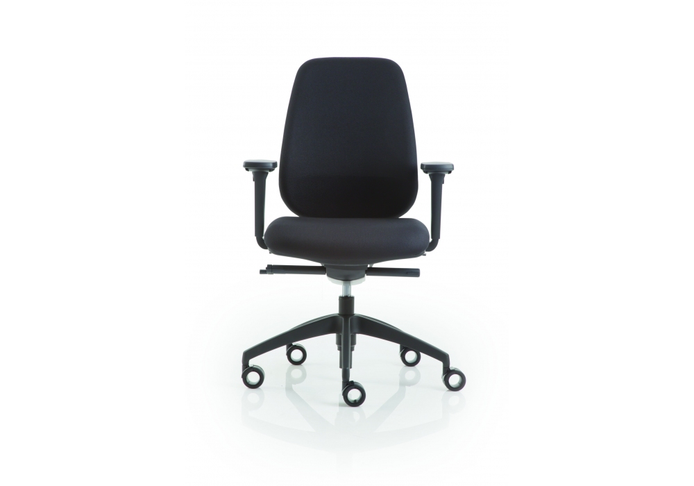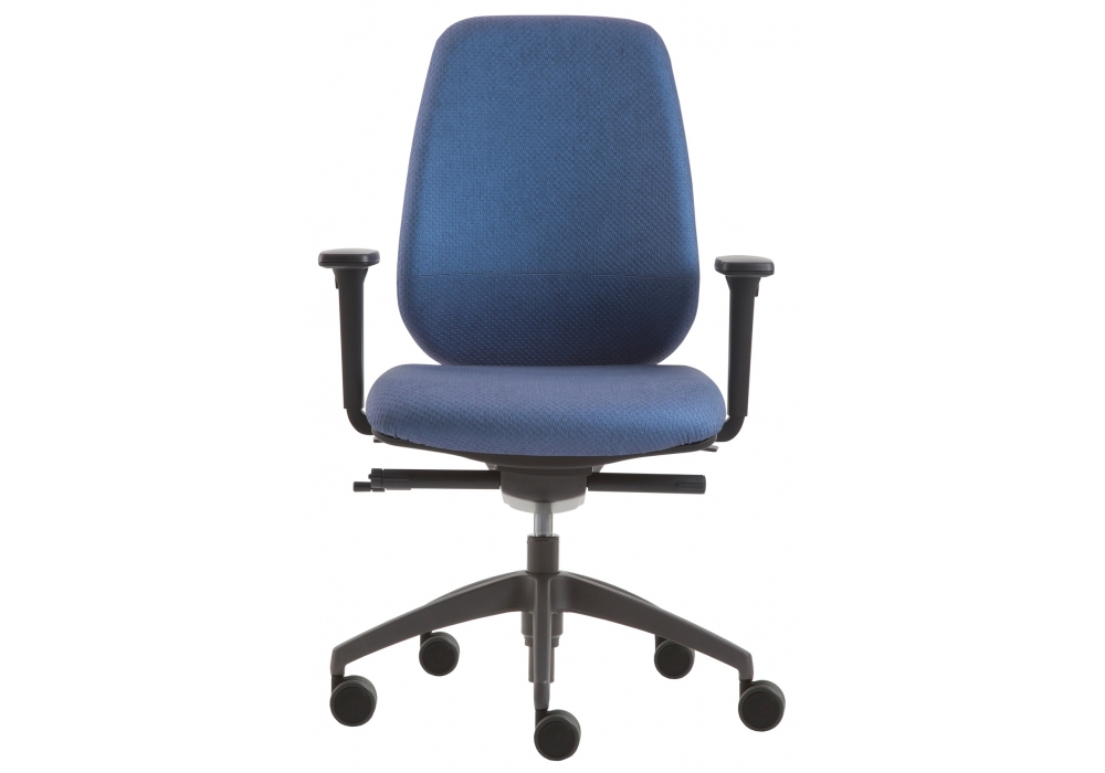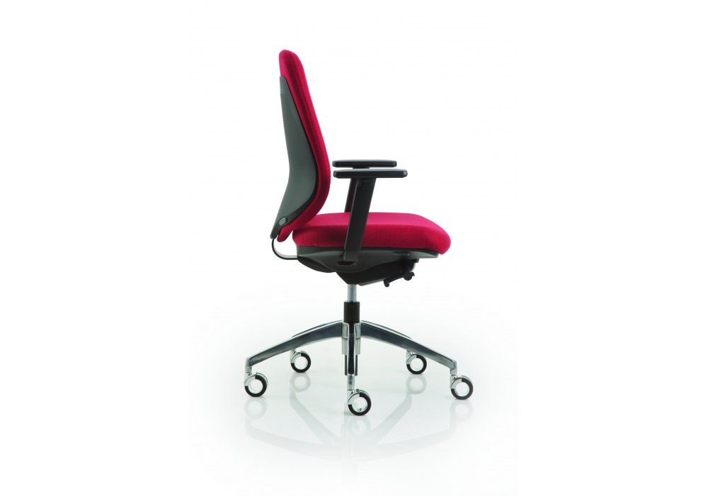 Pratica designed by Luxy is a chair with backrest and seat with high comfort shaped padding in fire retardant foam, base in black or white glass fiber reinforced nylon or in glossy die-cast aluminum. 2D or 4D armrests in white or black T with black pad in soft polyurethane. Upholstery in fabric or leather.