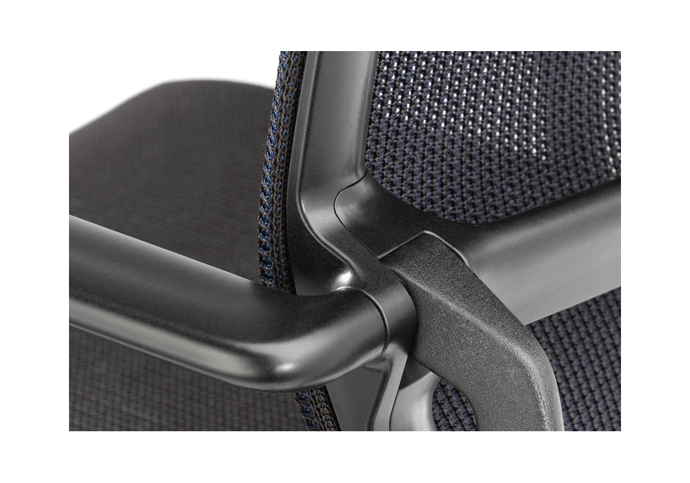 Frame, seat and backrest: Flexible frame and armrests made of polyamide in deep black or soft grey. One-pieced seat and backrest formed by the stretched fabric TrioKnit.