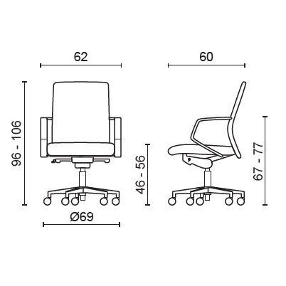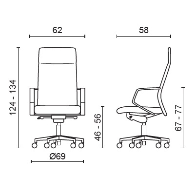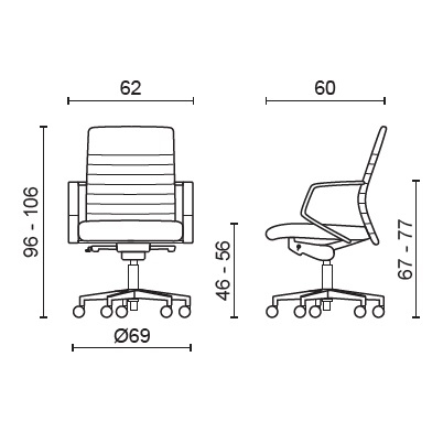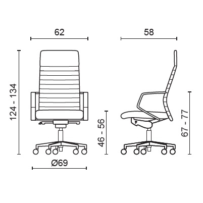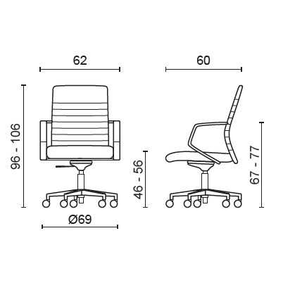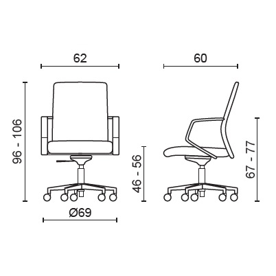 Celine designed by Milani is an office chair made with seat and backrest in fireproof foam, aluminum base and fabric or leather upholstery. Standard Ø 65 mm black self-braking wheels. Available in different models.
