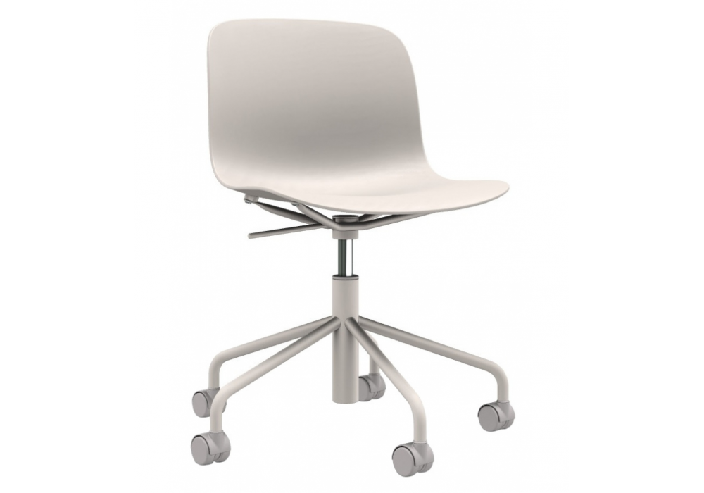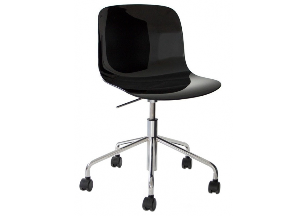 Troy Chair designed by Marcel Wanders for Magis is a swivel chair on 5 wheels with a polypropylene seat. Frame in chromed or polyester painted steel tube. Height adjustable by gas piston.