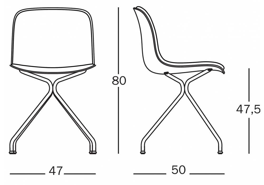 Troy 4 Star designed by Marcel Wanders for Magis is a chair made on 4 spokes, structure in chromed or painted steel tube. Seat in polypropylene or beech plywood. Seat with front padded in fire-retardant polyurethane foam in fabric or leather.