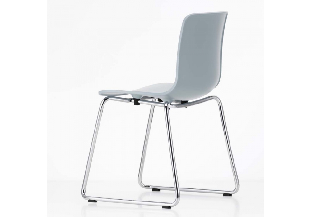 HAL RE Sledge designed by Jasper Morrison for Vitra is a chair with sled base in chromed tubular steel and shell in recycled mass-dyed polypropylene. Also available with connecting elements in a row.