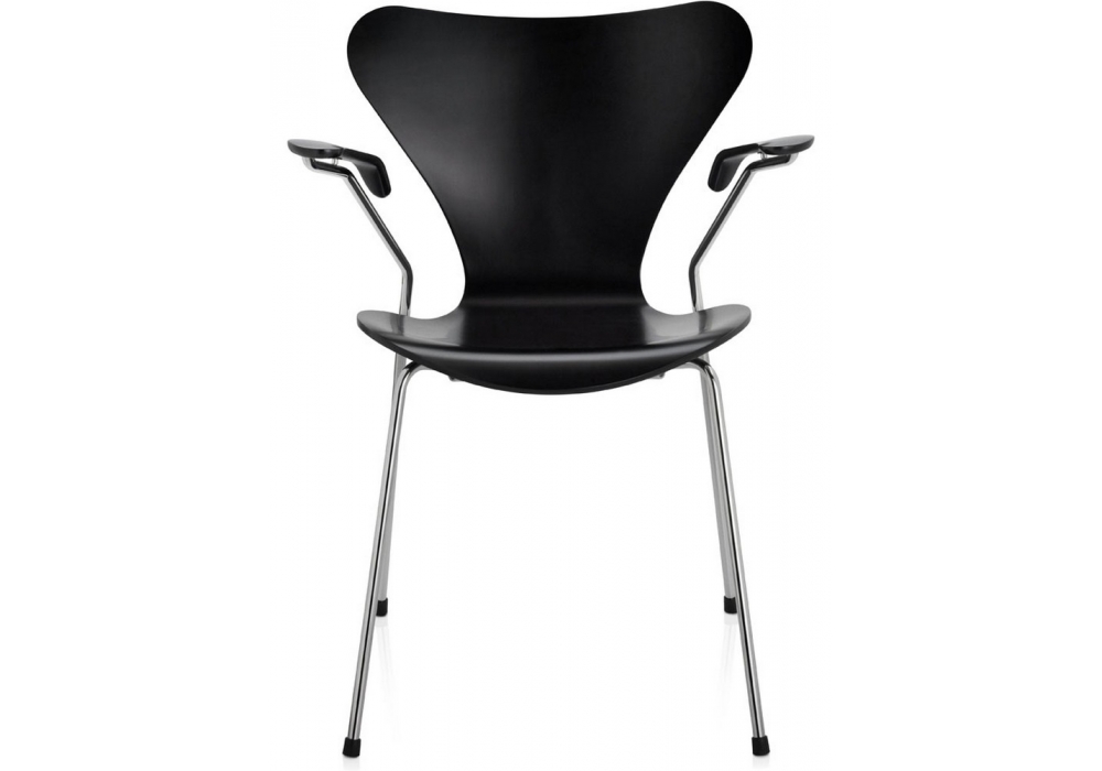 Series 7 designed by Arne Jacobsen for Fritz Hansen is a chair with armrests made with shell in veneered wood or in lacquered or colored ash and legs in chromed or powder-coated tubular steel. Available in different finishes.