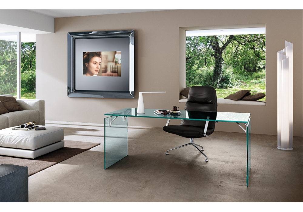 Bright designed by CRS Fiam for Fiam is a desk made of removable tempered glass, with aluminum and steel mounting supports. Available in different dimensions.