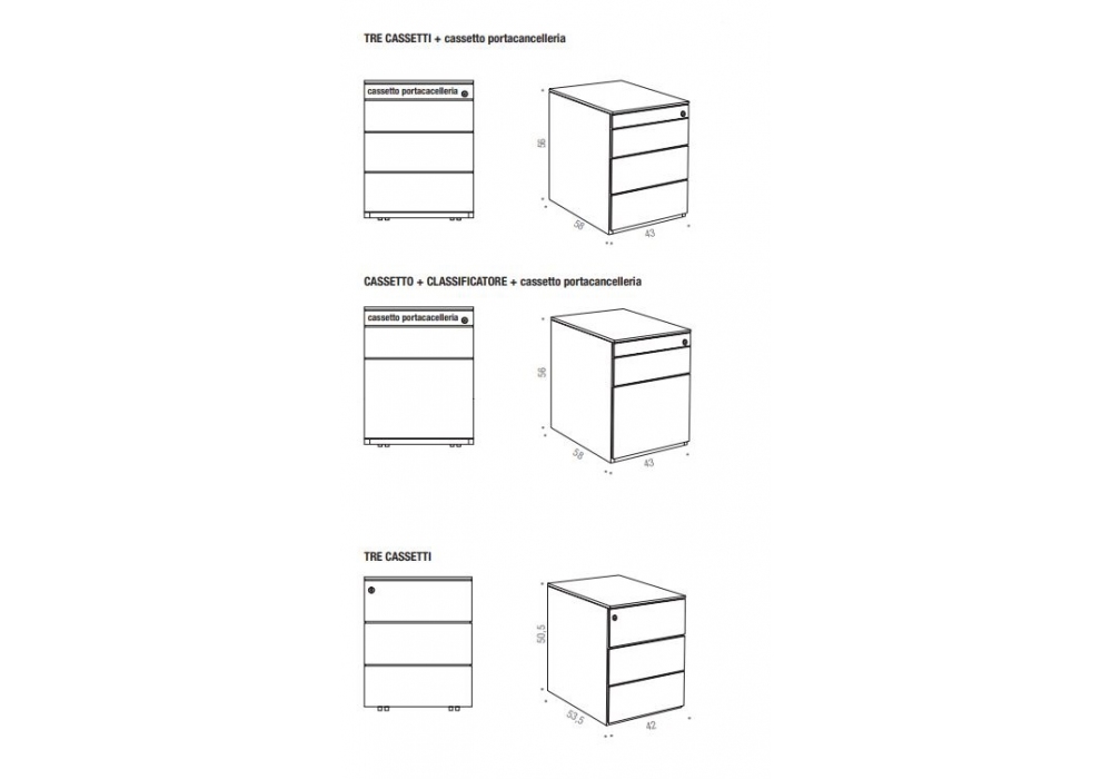 Office Cabinets produced by MDF Italia is a chest of drawers available in three types: with 3 drawers with lock complete with stationery drawer, with 1 drawer with 1 filing cabinet complete with stationery drawer, with 3 drawers with stationery holder accessory. All models are equipped with swivel wheels, anti-tip system and removable drawers on ball guides. The chest of drawers is available in different colors.