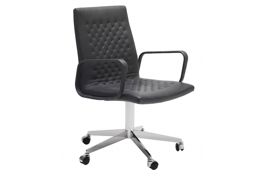 DS-1051 designed by de Sede Design Team for De Sede is a chair with wheels, polished chrome structure and seat with SEDEX leather upholstery. Available in the version with or without armrests.