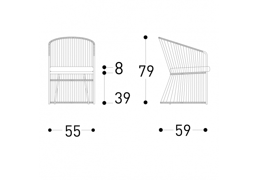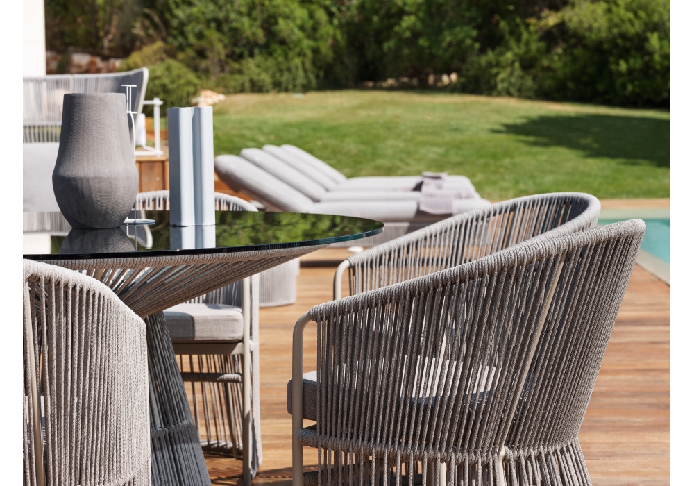 Tibidabo designed by Calvi & Brambilla for Varaschin is an armchair with powder coated aluminum frame with woven synthetic fiber covering. Feet in polypropylene. Removable cushions. Available in different finishes.