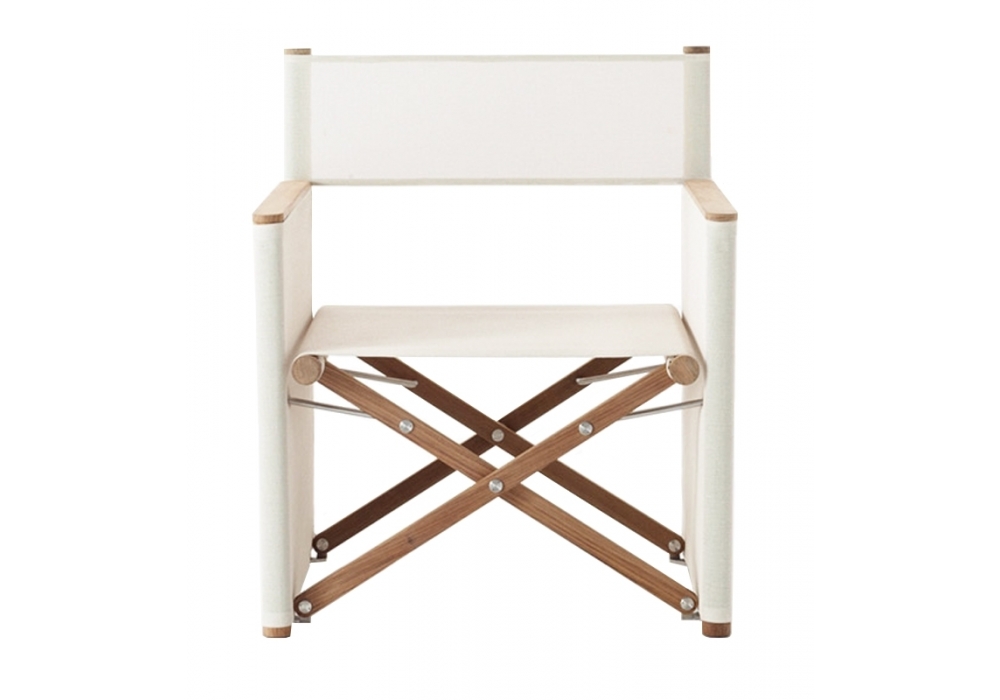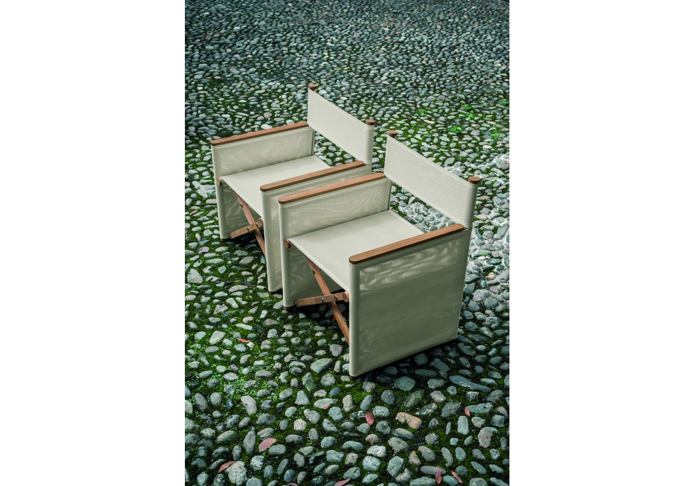 Orson 002 is an outdoor director lounge chair designed by Gordon Guillaumier for Roda. It reinterprets the classic director’s chair in a contemporary key. Thanks to its convenient folding system, which allows it to remain standing on its own, Orson is presented as an extremely convenient and practical collection. The new and innovative line of this new collection reworks the image of one of the most famous outdoor chairs, giving it added elegance and volume thanks to the structural fabric - Canatex - which also dresses its sides, providing glimpses of the solid teak structure. The chair is enhanced by electropolished grade 304 stainless steel details.