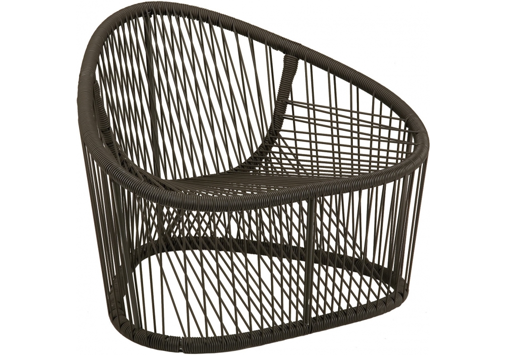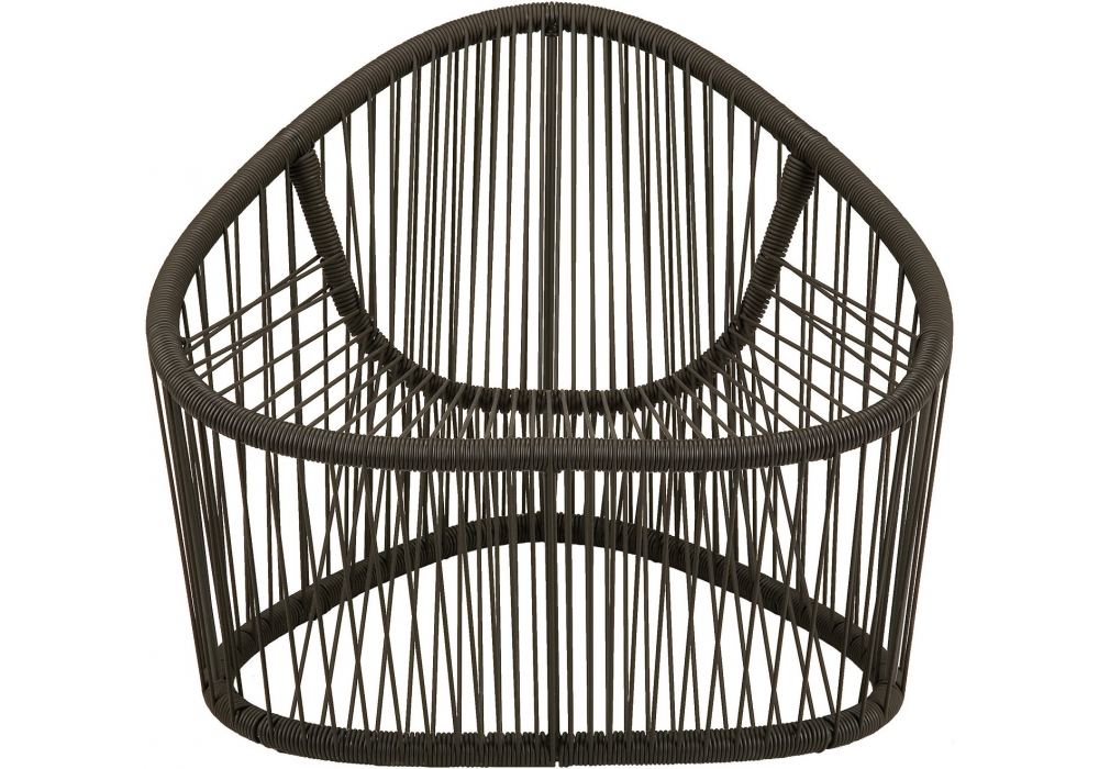 1009 Club designed by Prospero Rasulo for Zanotta is an armchair with steel internal structure painted for outdoor use. Weave in PVC thread with nylon internal reinforcement, in the shade of brown.