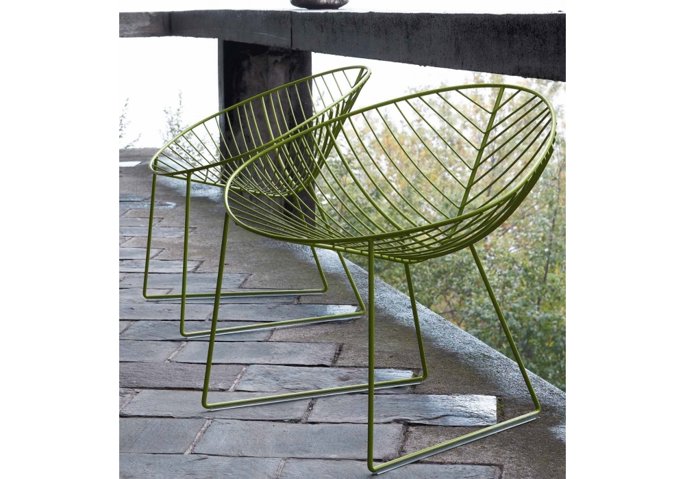 Leaf is a seats collection designed by Lievore Altherr Molina for Arper. Lounge small armchair with sled base made in painted steel rod. Available in three colors: white, green and moka. The version can be used outdoor. Glides for wooden floors available upon request.