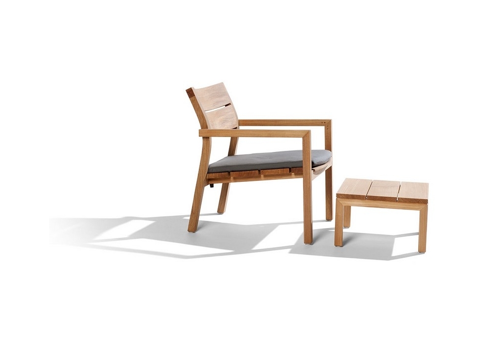 Kos Teak designed by Studio Segers for Tribù is a low armchair with teak slatted structure. Its design is very comfortable and energetic. The seat cushion is available with different coverings.