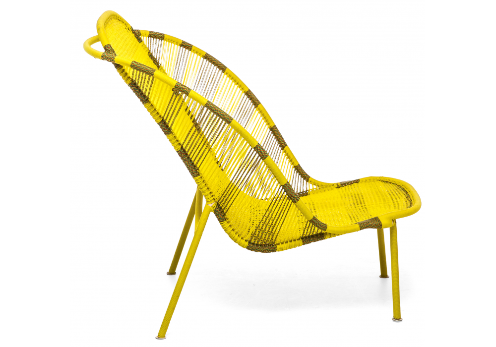 Imba designed by Federica Capitani for Moroso is an armchair with painted steel structure and colored hand-woven polyethylene threads. PVC insoles.