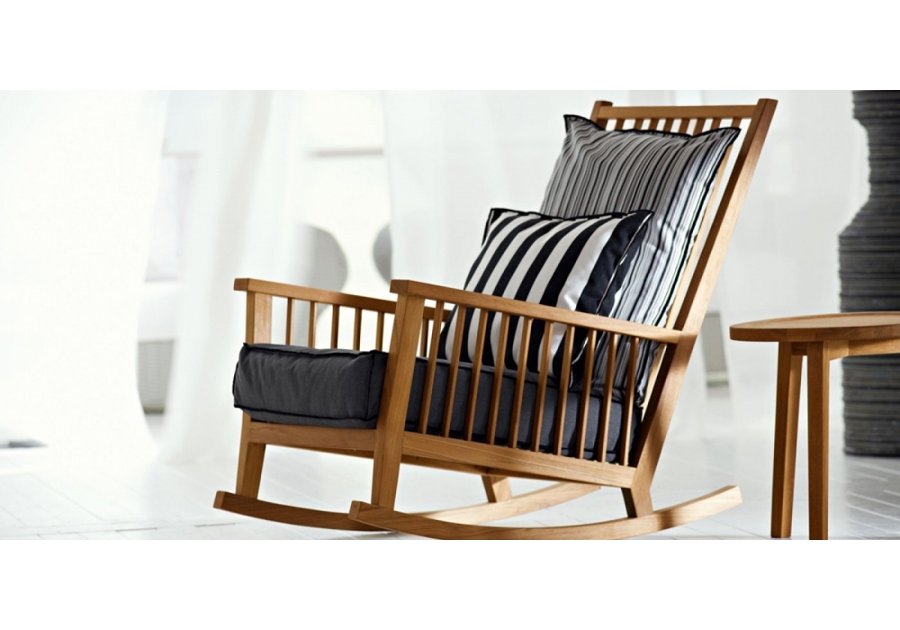 InOut 709 designed by Paola Navone for Gervasoni is a rocking armchair with oiled iroko structure.