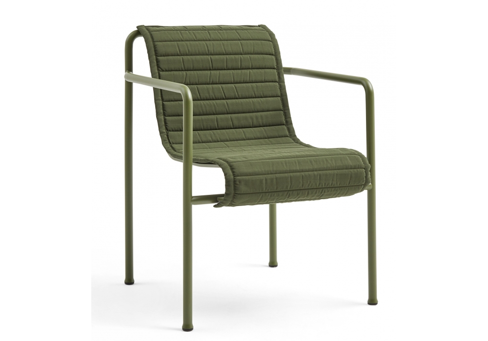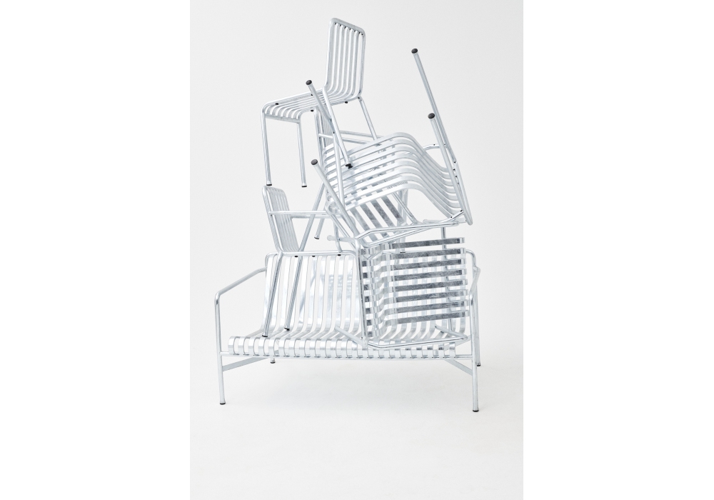 Palissade designed by Ronan & Erwan Bouroullec for Hay is an outdoor armchair made in powder coated or hot galvanized steel. It is possible to add the quilted seat/backrest or seat cushion as an accessory. Available in different finishes.
