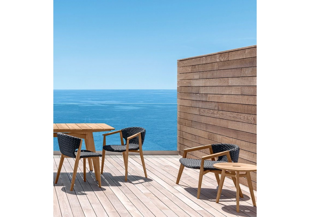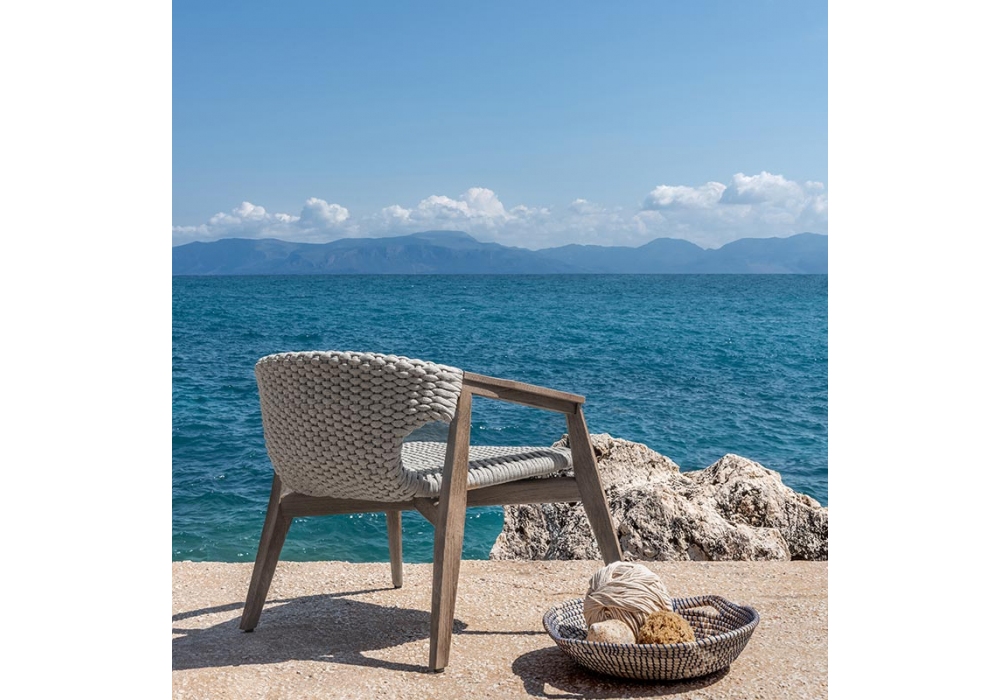 Knit Lounge designed by Patrick Norguet for Ethimo is an armchair with structure in teak wood in different finishes and coverings. Available with or without cushions.