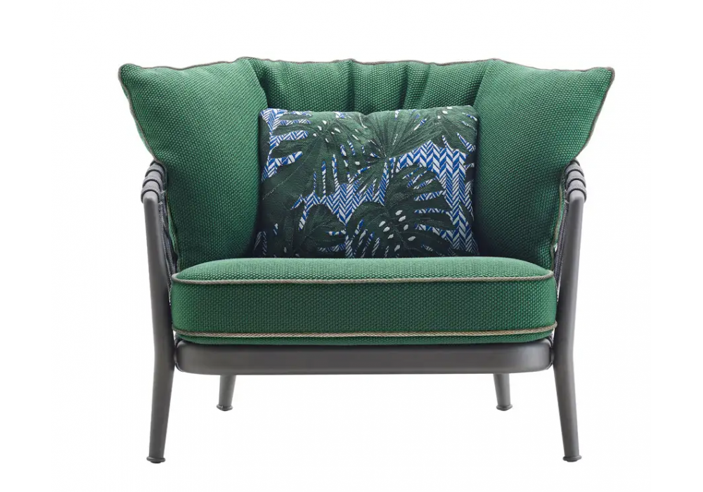 Erica designed by Antonio Citterio for B&B Italia is an armchair with an aluminum frame and matching polypropylene fiber weave. Upholstery in different fabrics.