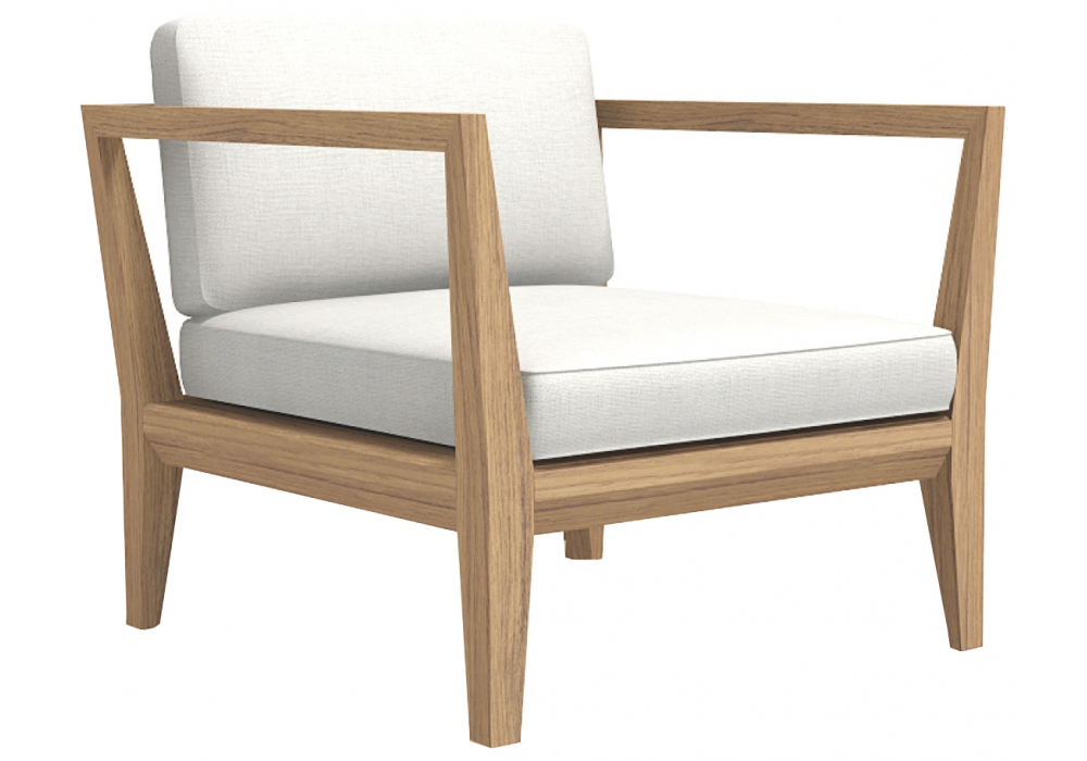 Teka 010 designed by Gordon Guillaumier for Roda is an armchair realized with teak structure, seat support in canatex and cushions upholstered in fabric. The mingling of different materials spotlights all the expressive force of teak which is mixed with Canatex fabrics for the seats. The refinement of the TEKA product is also expressed through the choice of some details, such as the use of buttons that perfectly fit into the design of the sofa backrest and arms, stopping the cushions from slipping and giving an aesthetic touch.